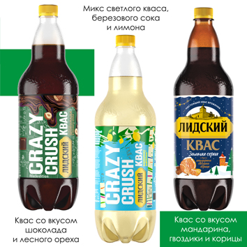 Так, белорусский производитель «Лидское пиво» не боится экспериментировать со вкусами и регулярно выпускает новинки, которые рассчитаны в том числе и на молодое поколение потребителей.    Лидский квас «CRAZY CRUSH» со вкусом шоколада и лесного ореха, летний микс светлого кваса, березового сока и лимона, а специально к Новому году — натуральный темный квас со вкусом мандарина, гвоздики и корицы.